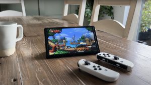 This new version carries over some of the original features from the 2017 model, including being able to use it handheld, tabletop mounted as well as on your TV. It’s still got USB C charging, HD Rumble Joy-Cons and the little straps to prevent you from throwing them at your TV.